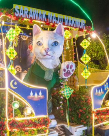🐱✨ Kuching’s Iconic Cat Statue Dressed for Raya..