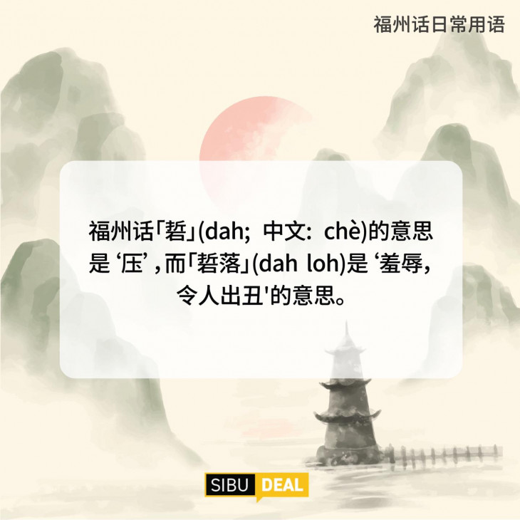 💁🏻♀️这些独特的表达方式,如【硩落侬】Dah loh noeng在福州话「硩」(dah; 中文: chè)的意思是‘压’,而「硩落」(dah loh)是‘羞辱,令人出丑'的意思。