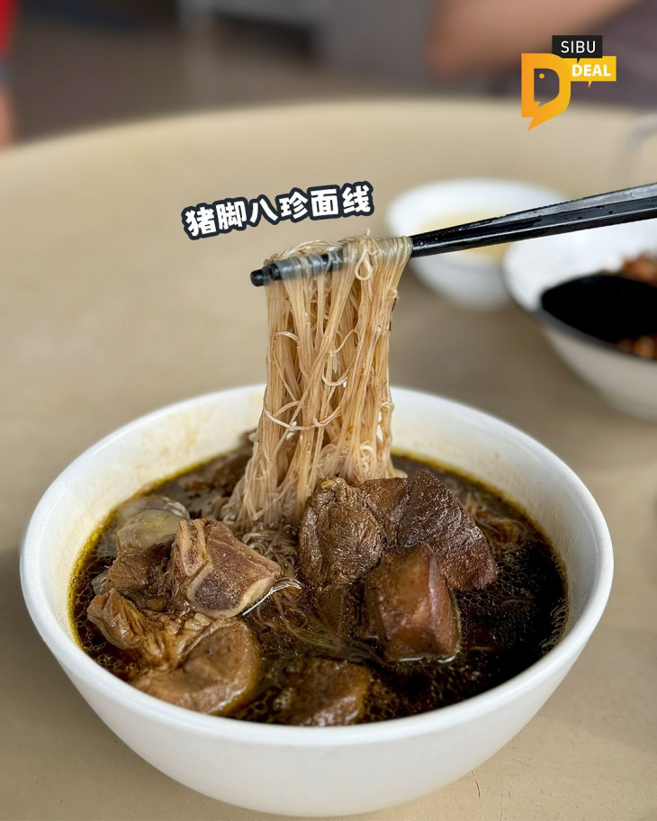 菜单看似简单,但选择多到让人犹豫:熟悉的传统早餐、云吞、干拌面、粿条……应有尽有。这次小编特地点了几样早餐,其中热腾腾的 #八珍猪脚面线 深受大家喜爱,浓厚的汤头加上满满的肉。