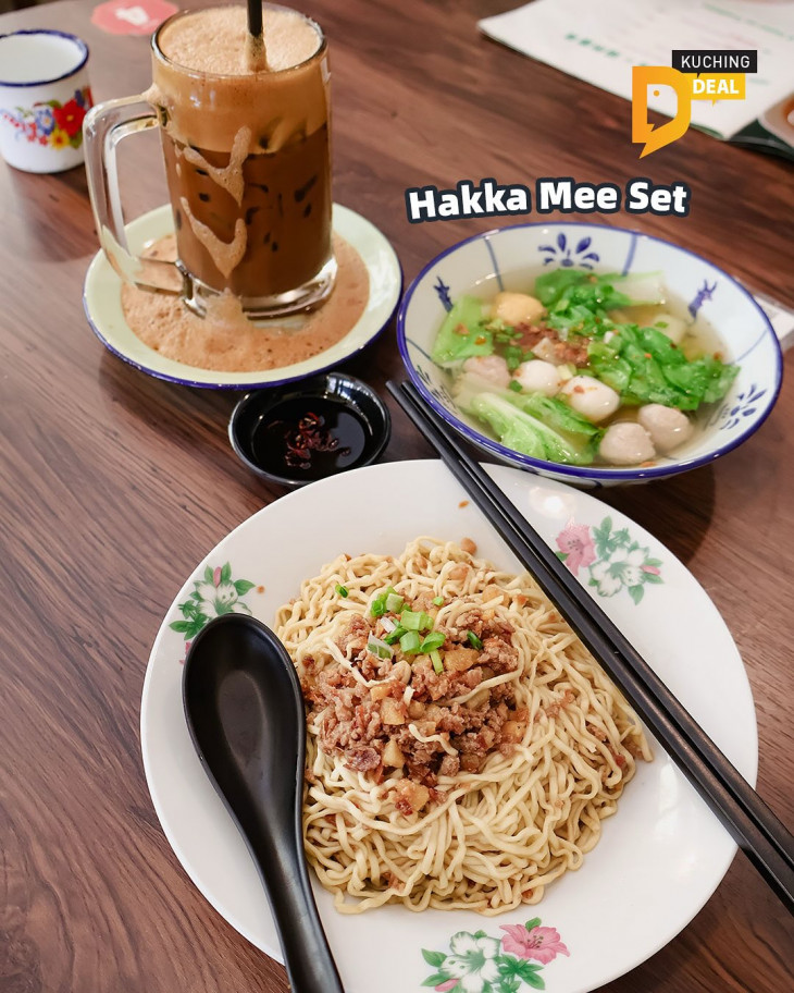 小编点了招牌 Hakka Mee Set —— 手工面果然不同,弹牙有嚼劲,上面铺着一大把猪油渣,香气直接扑鼻,完全停不下来, 再来一碗热腾腾的汤, 简直完美 !