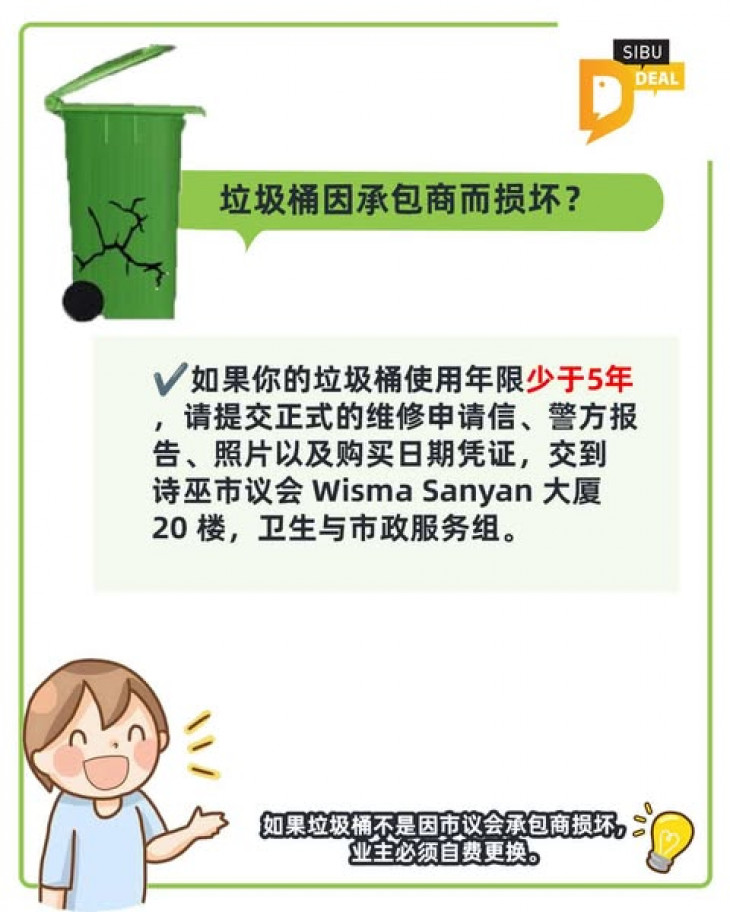 ‼️ 温馨提醒:如果垃圾桶不是因市议会承包商损坏,业主必须自费更换。