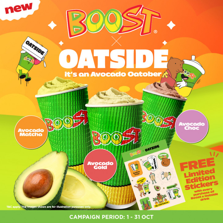 Double the goodness this Oatober! 🥤🥑 Boost Juice x Oatside collab + FREE sticker sheet with every drink.