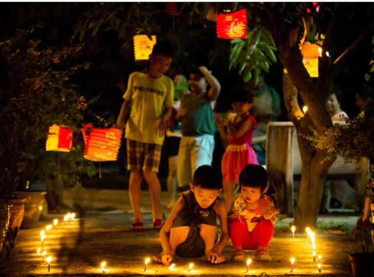 一群小孩追追跑跑,笑声和灯光一起晃动,那就是中秋的味道。