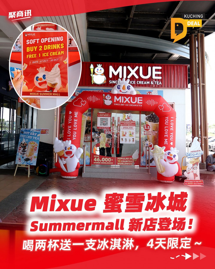 古晋的朋友们~ 是不是最近到哪里都能看到雪王的笑脸?👀没错~Mixue 真的来势汹汹,一次过在古晋开好多间!这次连 Summermall Kota Samarahan 都有啦~😍💖