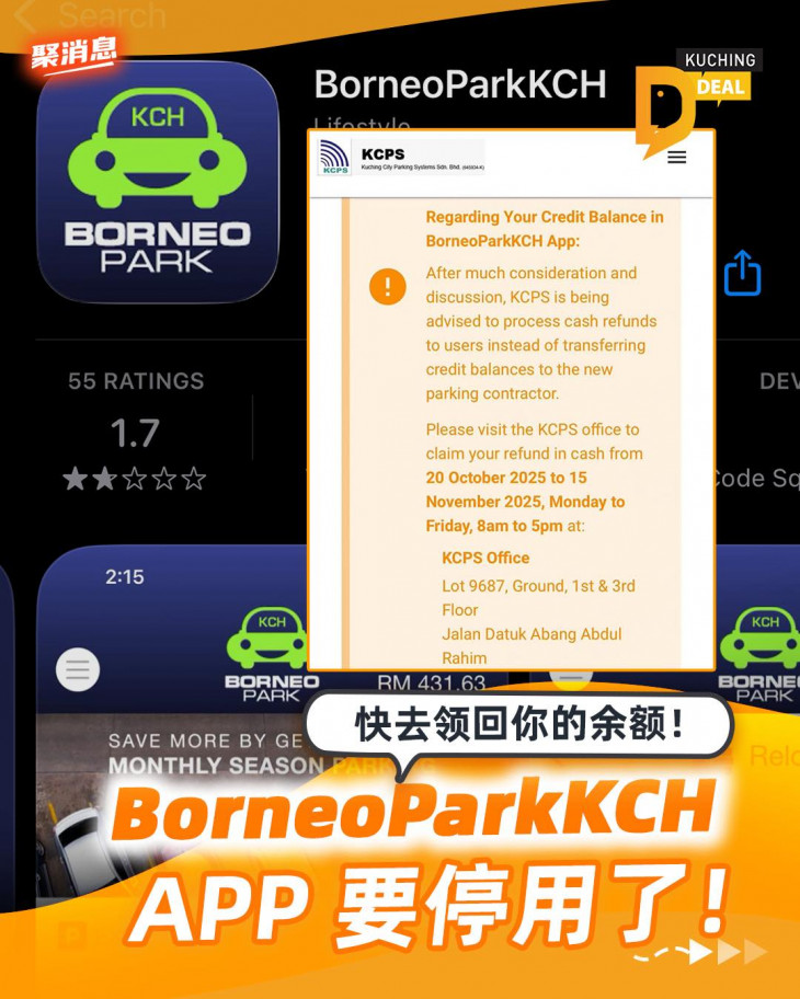 Kuching 司机朋友注意咯~👀 你平常用来缴停车费的 BorneoParkKCH App 要说 bye bye 啦~