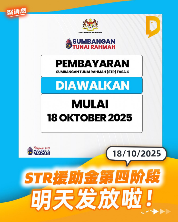 第四阶段的慈悯援助金(STR)发放日期提前至 2025年10月18日😍