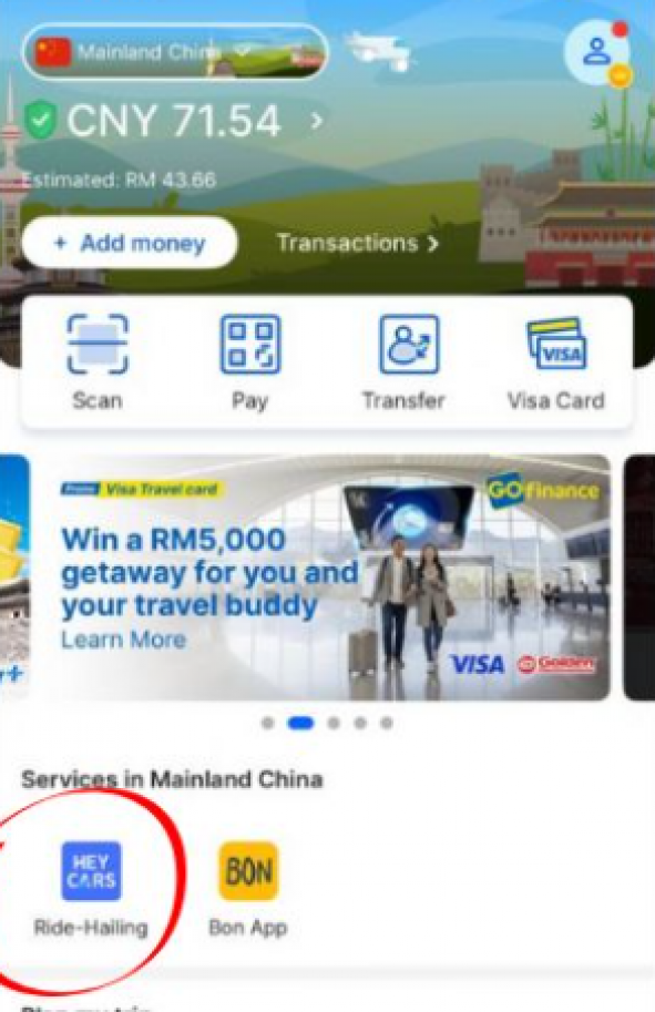 只要一个 Touch ‘n Go (TNG) App,就能在中国轻松打车!