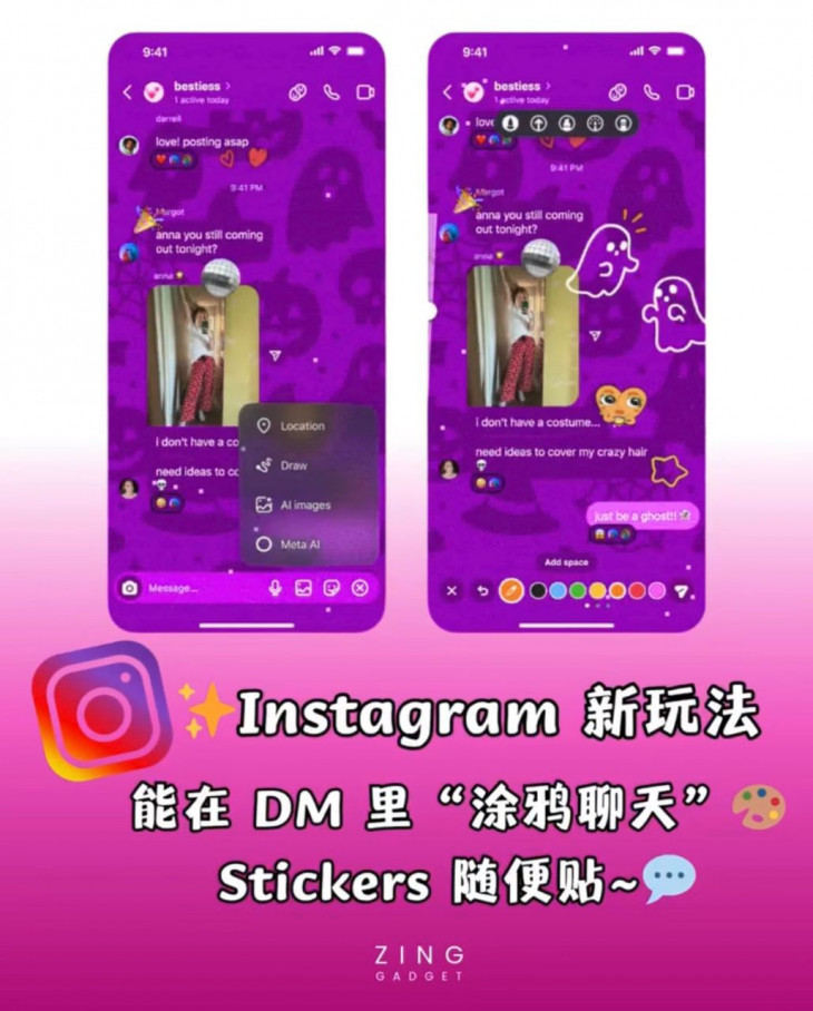 Instagram 推出全新 DM 功能,让你一边聊天一边“涂鸦互动”~ 贴纸还可以随手贴在对话里,超有趣、超个性 💥