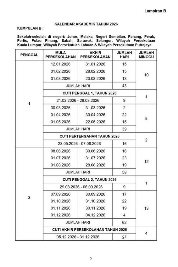 所有日期以教育部(KPM)官方行事历为准,如有变动将会另行通知。
