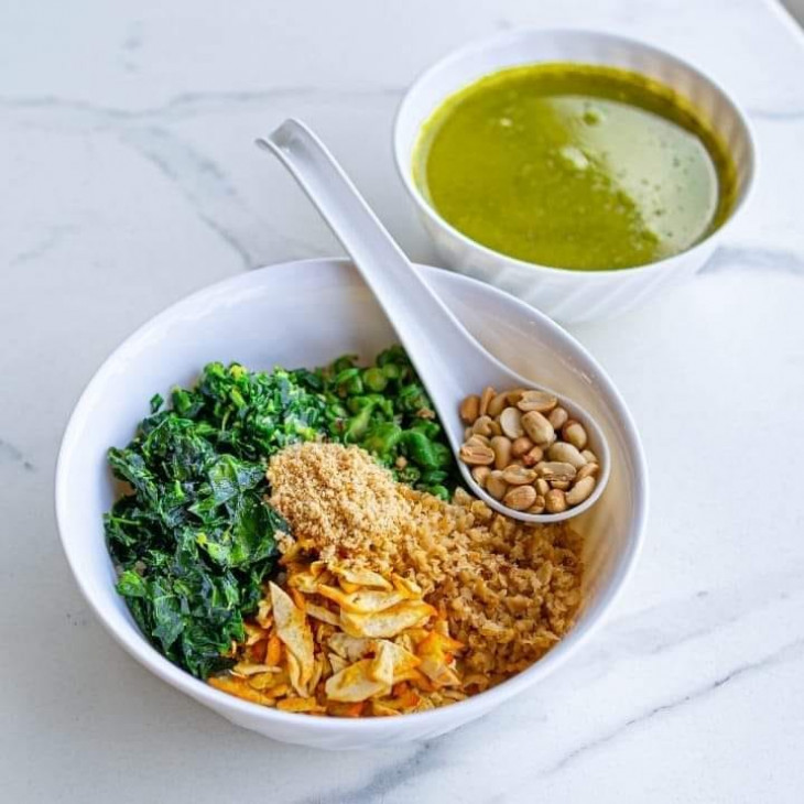满满的新鲜蔬菜、香脆花生、芝麻粉、豆干末、菜圃粒…
