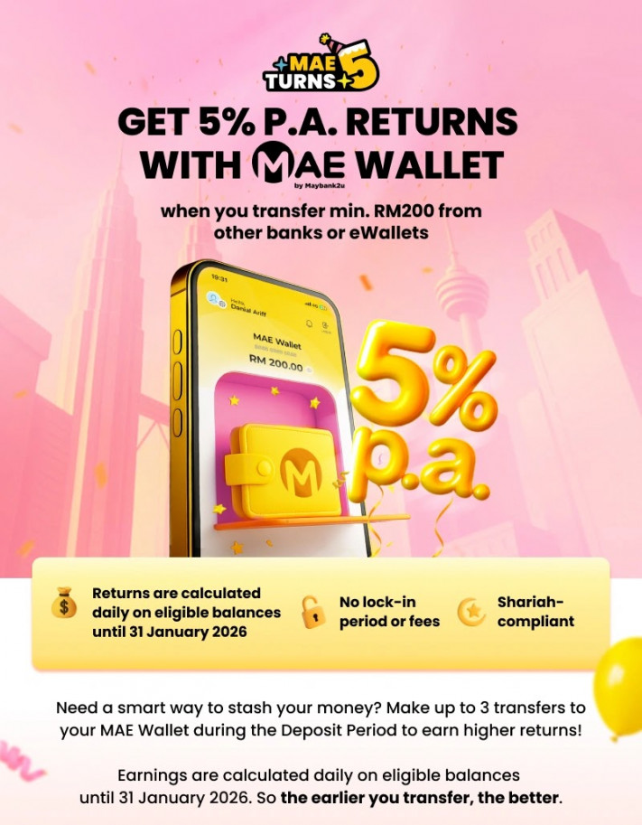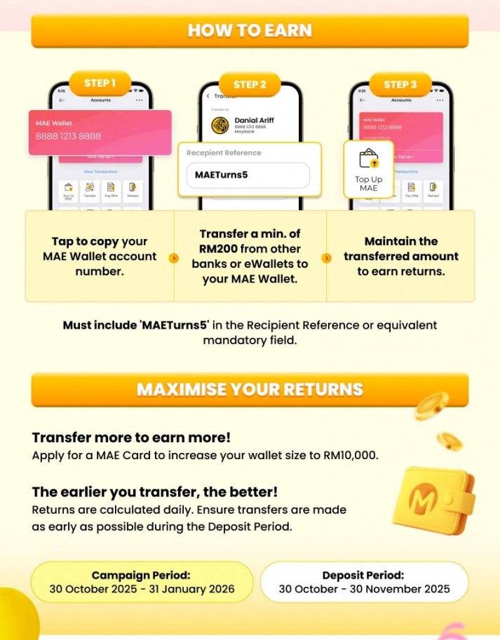 为了庆祝 MAE by Maybank 迎来5️⃣周年,Maybank推出超诱人的【5% p.a. 存款利率优惠】🔥