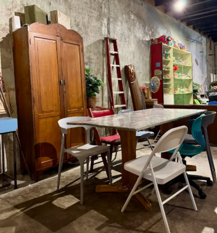 这间由旧店翻新的咖啡馆,就藏身在宁静的街区中,外观低调却充满故事感。推开木门,映入眼帘的是泛着岁月痕迹的家具——复古电话、老式电视📺、旧缝纫机、老收音机📻,每一个角落都散发出浓浓的怀旧气息。