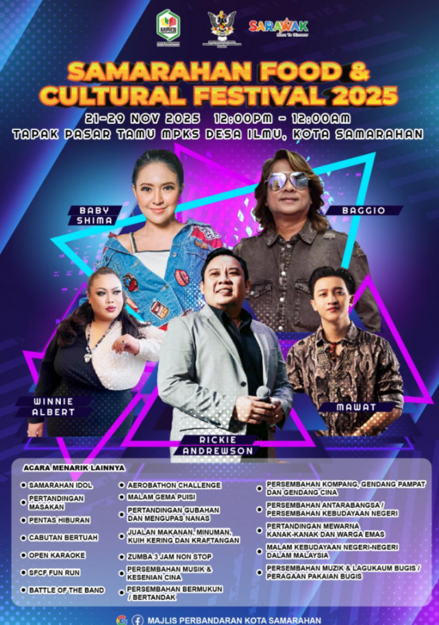 The Samarahan Food and Cultural Festival 2025 is set to welcome thousands of visitors as it returns with even more flavours, colours and cultural experiences. 🌟