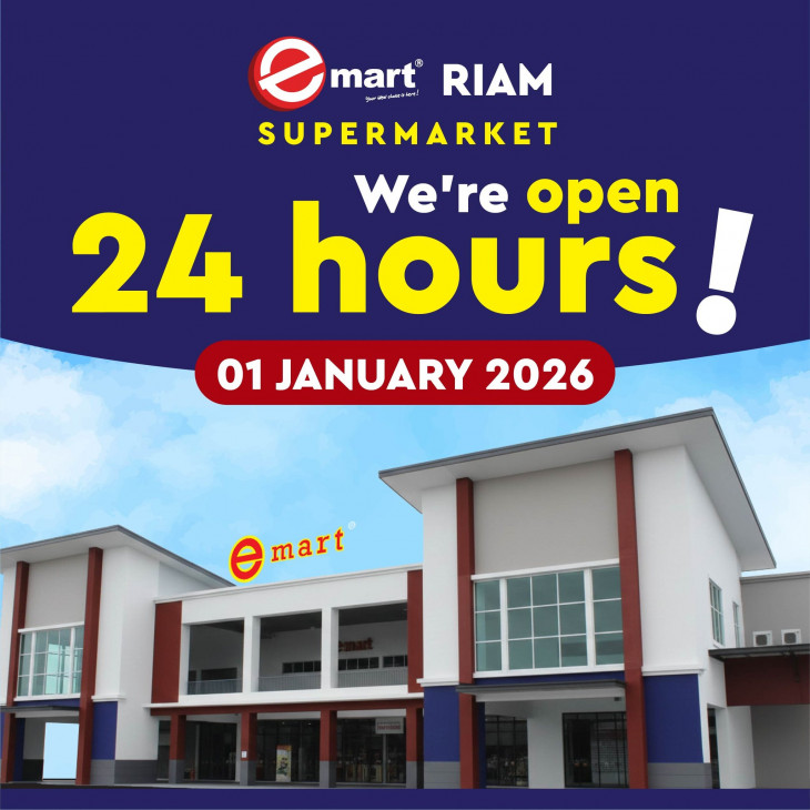 🛒 Emart Riam 即将正式 𝟐𝟒 小时营业! 🕛✨