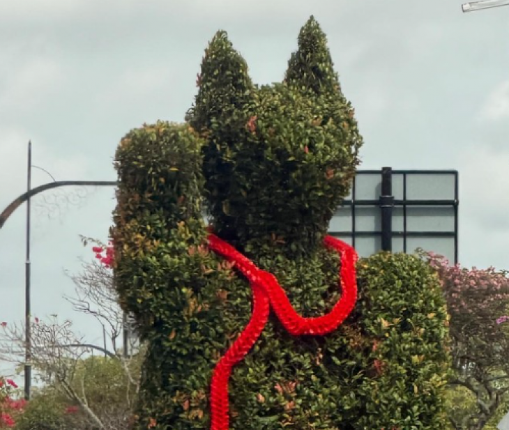 🎉🐾 古晋的巨猫灌木也准备好迎接新年啦!