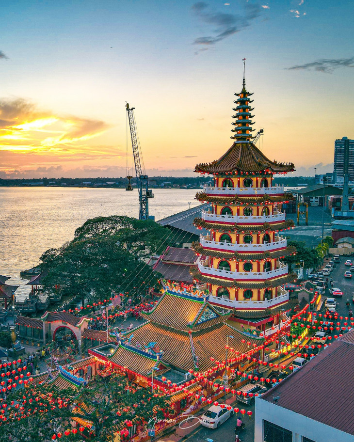 大伯公庙不仅是建筑艺术的瑰宝,更是诗巫华人从垦荒到繁荣的历史见证。每一次灾难,庙宇屹立不倒,香火旺盛,是当地人心灵的寄托。尤其在 农历新年、中元节、伯公诞,庙里会挂满红红的灯笼,香烟袅袅,夜晚的宝塔亮起灯光,整个庙区像被点亮的历史画卷,美得令人陶醉。