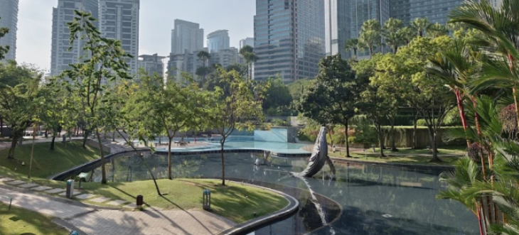 未来整体规划概念,将类似吉隆坡KLCC后方区域——购物中心面向景观花园与公园,园林环绕,湖景相伴,形成宜人的休闲与旅游环境 🏞️
