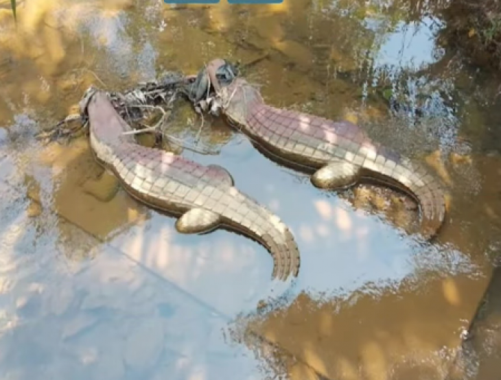 庙前河边有两条非常特别的土鳄鱼雕像🐊。据说很久以前,这里真的有两条土鳄鱼在湖边守护庙宇,后来被制成雕像,成为庙里的标志性景观,也是游客必拍的打卡焦点📸。每次来庙里,都能看到大家在雕像旁拍照留念,仿佛感受到了古老传说的神秘气息。