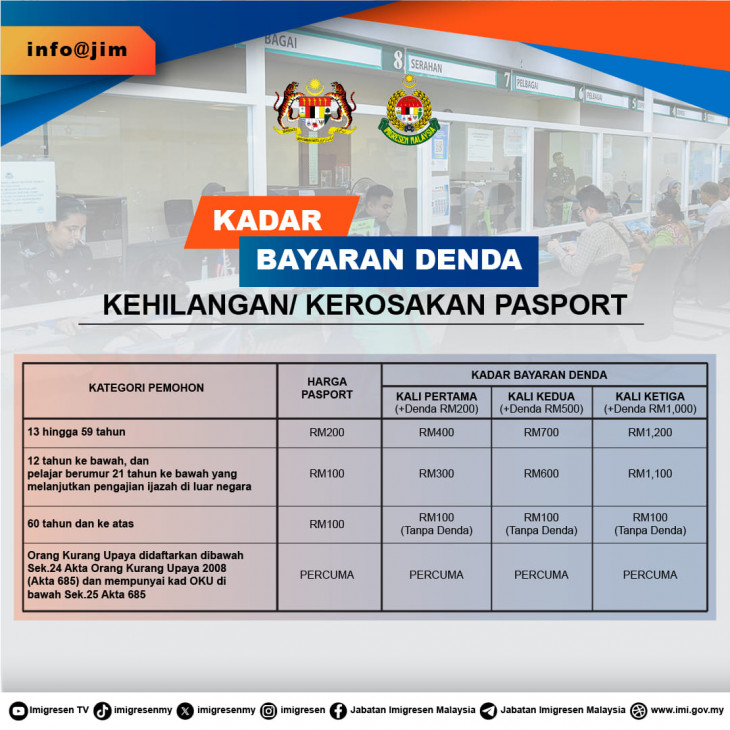 ⚠️根据马来西亚移民局的规定,补办遗失或损毁护照的费用如下(包含申请费 + 罚款):🚨