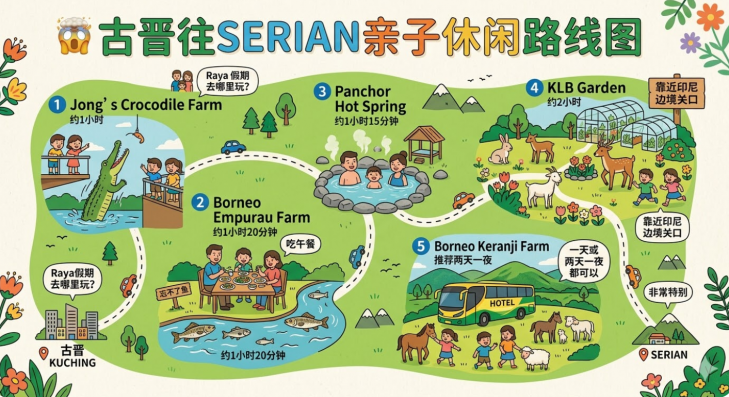 如果不想去太远,又想让孩子接触大自然,其实 古晋往Serian这一条路线,就有不少适合亲子的地方!