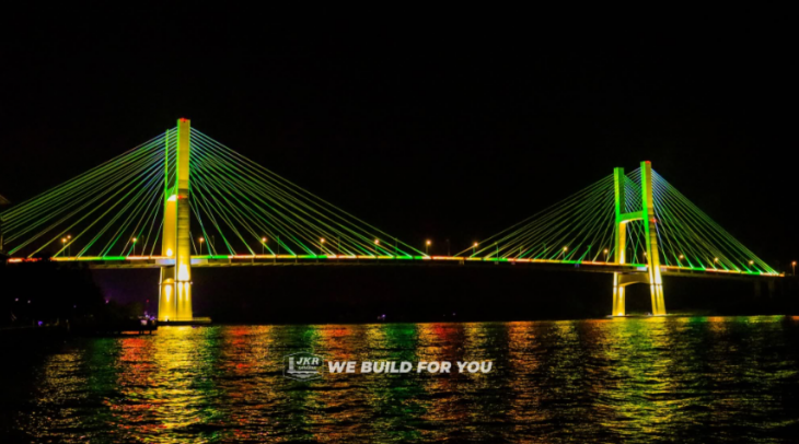 Bintulu just got a whole lot brighter! In celebration of the upcoming Hari Raya Aidilfitri, the iconic Tun Taib Mahmud Bridge was beautifully illuminated on Tuesday, lighting up the night skyline with vibrant festive colours.