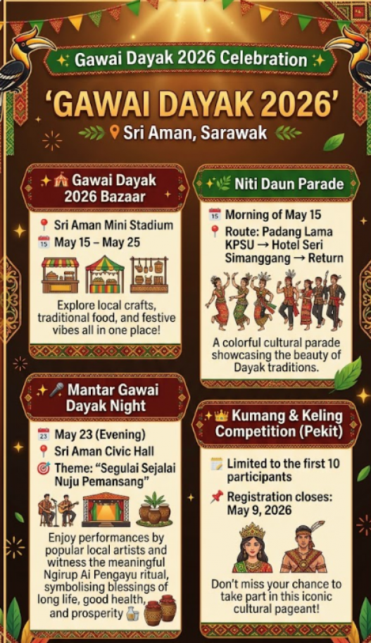 Get ready for a vibrant festive season as Bandar Simanggang comes alive with a series of exciting events in conjunction with Gawai Dayak 2026! โจ