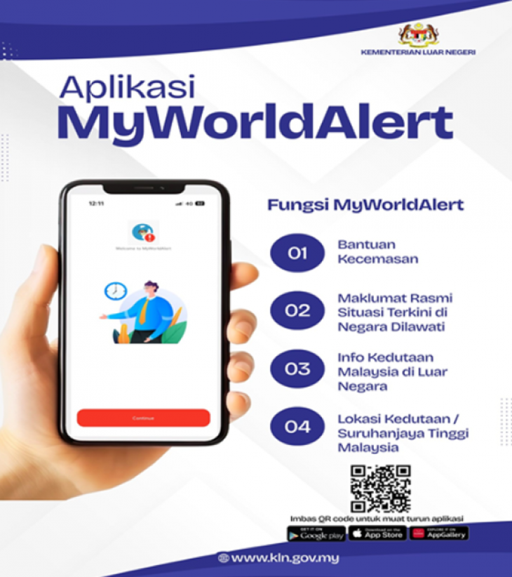 准备出国?别忘了下载这款 救命 App – My World Alert!在陌生的国度,它就是你的 随身外交官,遇到紧急情况,第一时间联系马来西亚驻外大使馆/领事馆,保证你安全无忧!
