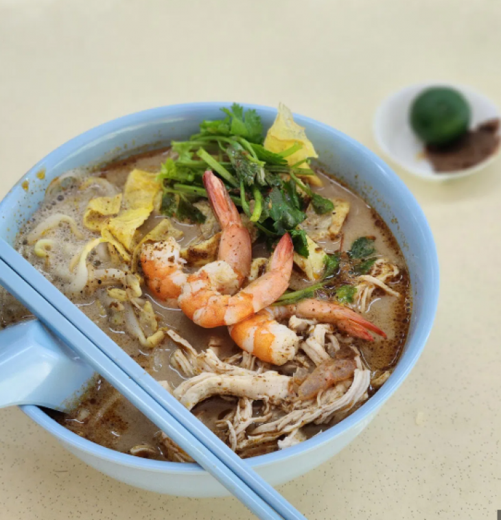 因为砂拉越Laksa可不是咖喱!它的汤底有特有的 虾膏香气、椰浆、丰富的香料层次,配上米粉、豆芽、鸡蛋丝、鲜虾和鸡肉!