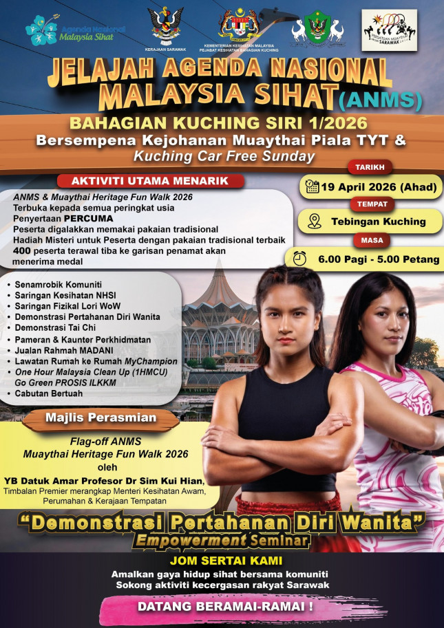 Organised by the Kuching Divisional Health Office, this exciting event is held alongside the TYT Cup Muaythai Championship 2026 and the popular Car Free Sunday programme—making it the perfect way to enjoy a healthy and active weekend!