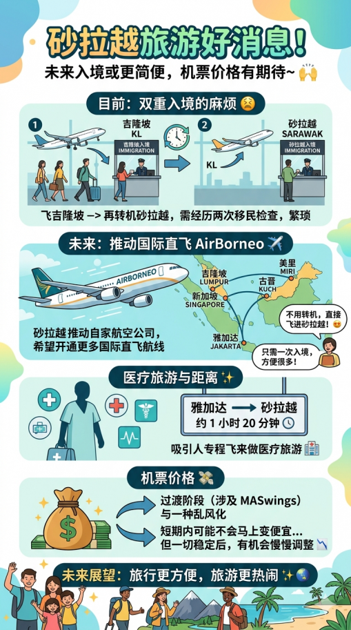 有个好消息在酝酿中~未来去砂拉越,或许不用再经历“入境两次”的麻烦流程了 🙌