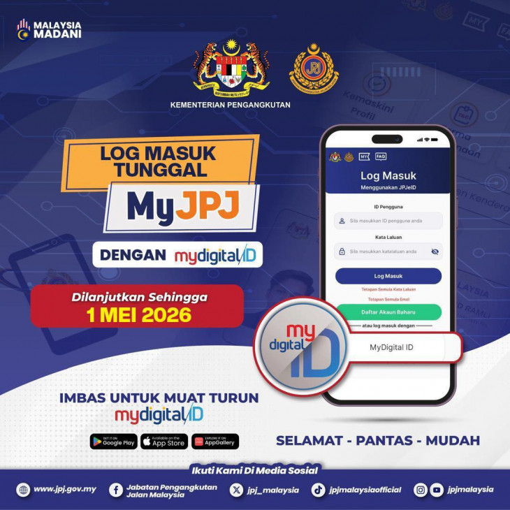 从 5月1日开始,MyJPJ App 将强制使用 MyDigital ID 登录,不再支持其他方式!