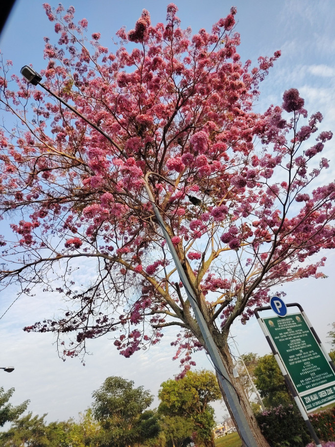 这棵美丽的“大粉树”位于 Miri 珠巴交通圈一带,正值花期的它,吸引不少人停下脚步拍照打卡📷💗