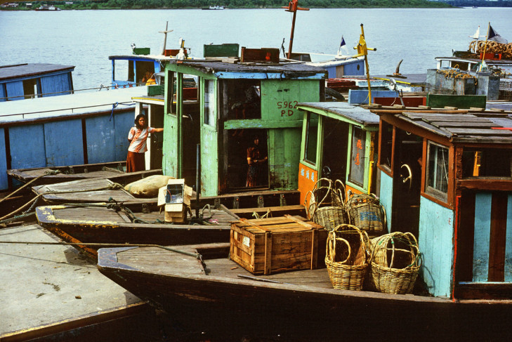 📍 图2 & 3: 繁忙的拉让江畔,穿梭的船只载着生活的希望。