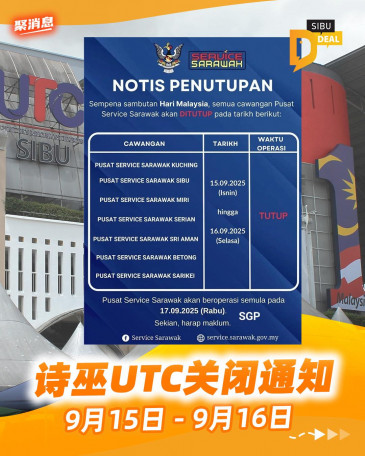 ▌sibuDEAL聚消息 ▌📢 诗巫UTC关闭通知