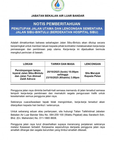 【紧急通知】诗巫-民都鲁路段(靠近诗巫医院)主要道..